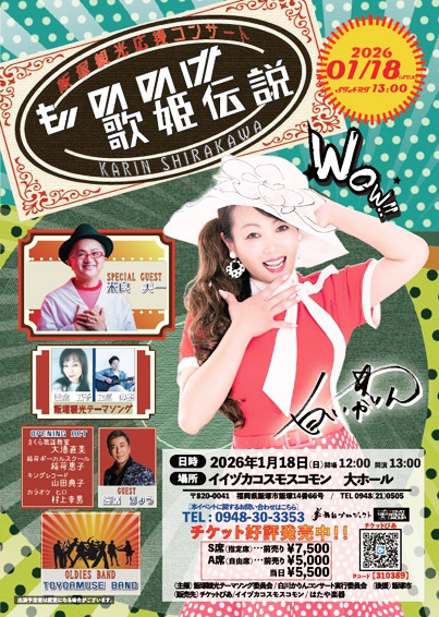 2024年10月見事に2025年度の飯塚市観光テーマソング専属歌手になった、志水伸哉さんのライブ情報です!